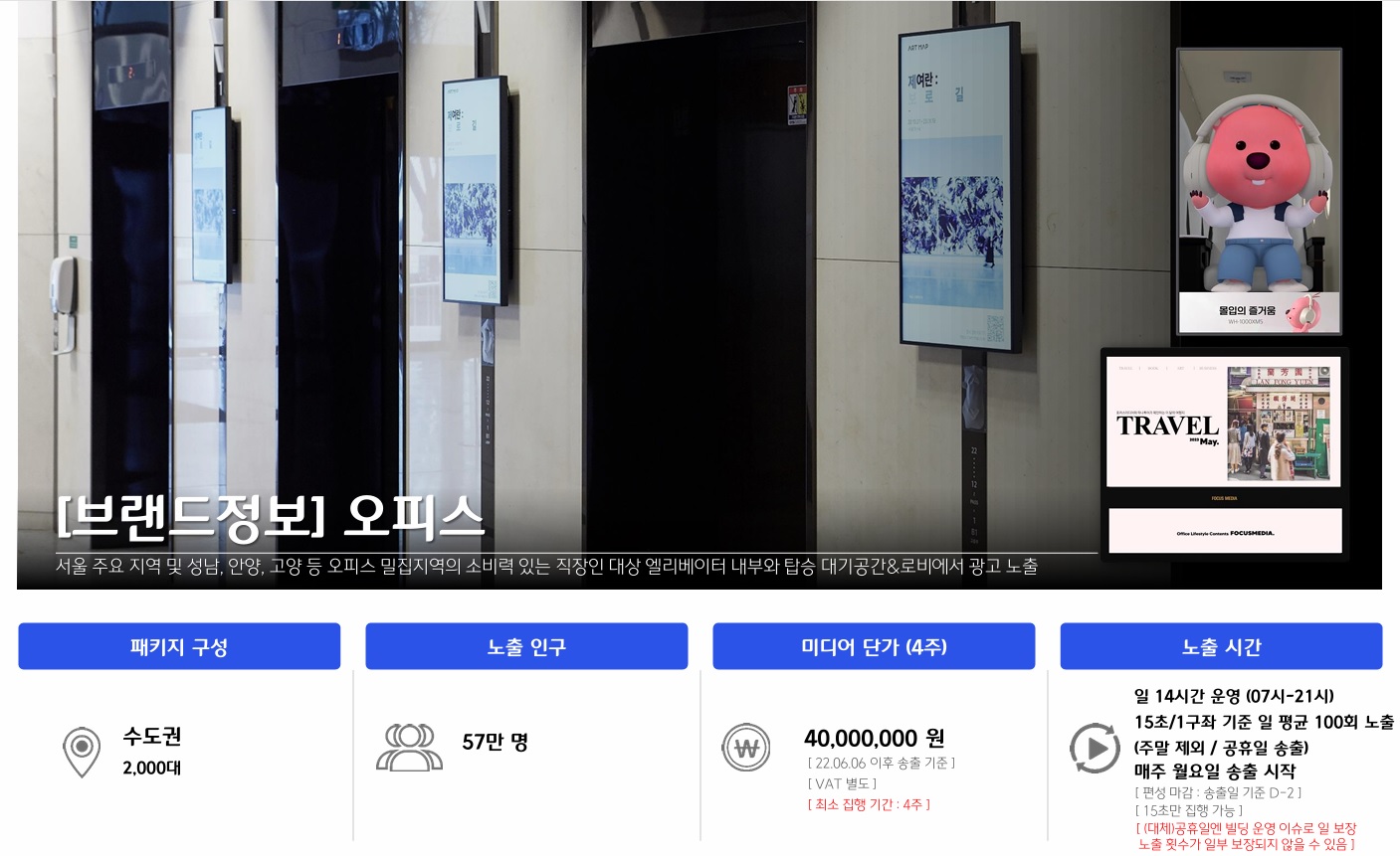 2,800여 대 엘리베이터 안팎 모니터 광고 패키지를